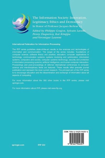 The Information Society: Innovation, Legitimacy, Ethics and Democracy In Honor of Professor Jacques Berleur s.j.