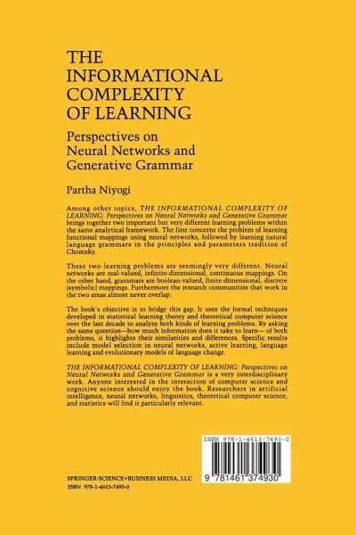 Among other topics, The Informational Complexity of Learning: Perspectives on Neural Networks and Generative Grammar brings together two important but very different learning problems within the same analytical framework. The first concerns the problem of learning functional mappings using neural networks, followed by learning natural language grammars in the principles and parameters tradition of Chomsky.