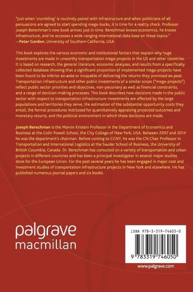 This book explores the various economic and institutional factors that explain why huge investments are made in unworthy transportation mega-projects in the US and other countries. It is based on research, the general literature, economic analyses, and results from a specifically collected database showing that a significant proportion of implemented mega-projects have been found to be inferior ex-ante or incapable of delivering the returns they promised ex-post . Transportation infrastructure and other public investments of a similar scope ("mega-projects") reflect public sector priorities and objectives, non-pecuniary as well as financial constraints, and a range of decision-making processes. This book describes how decisions made in the public sector with respect to transportation infrastructure investments are affected by the large populations and territories they serve, the estimation of the substantial opportunity costs they entail, the formal procedures instituted for quantitatively appraising projected outcomes and monetary returns, and the political environment in which these decisions are made.
