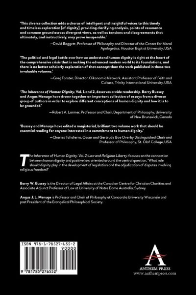 Barry W. Bussey is Director of Legal Affairs, at the Canadian Centre for Christian Charities and Associate Adjunct Professor of Law at University of Notre Dame Australia, Sydney. Angus J. L. Menuge is Professor and Chair of Philosophy at Concordia University Wisconsin and past President of the Evangelical Philosophical Society.