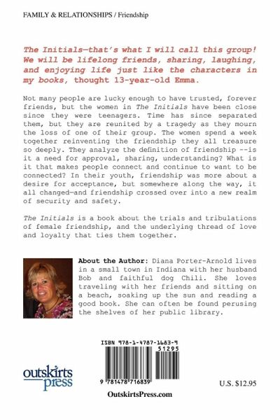 The Initials-that's what I will call this group! We will be lifelong friends, sharing, laughing, and enjoying life just like the characters in my books, thought 13-year-old Emma. Not many people are lucky enough to have trusted, forever friends, but the women in The Initials have been close since they were teenagers. Time has since separated them, but they are reunited by a tragedy as they mourn the loss of one of their group. The women spend a week together reinventing the friendship they all treasure so deeply. They analyze the definition of friendship --is it a need for approval, sharing, understanding? What is it that makes people connect and continue to want to be connected? In their youth, friendship was more about a desire for acceptance, but somewhere along the way, it all changed-and friendship crossed over into a new realm of security and safety. The Initials is a book about the trials and tribulations of female friendship, and the underlying thread of love and loyalty that ties them together.
