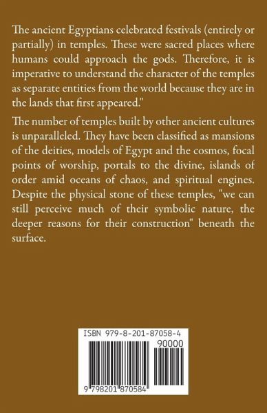 The ancient Egyptians celebrated festivals (entirely or partially) in temples. These were sacred places where humans could approach the gods. Therefore, it is imperative to understand the character of the temples as separate entities from the world because they are in the lands that first appeared." The number of temples built by other ancient cultures is unparalleled. They have been classified as mansions of the deities, models of Egypt and the cosmos, focal points of worship, portals to the divine, islands of order amid oceans of chaos, and spiritual engines. Despite the physical stone of these temples, "we can still perceive much of their symbolic nature, the deeper reasons for their construction" beneath the surface.
