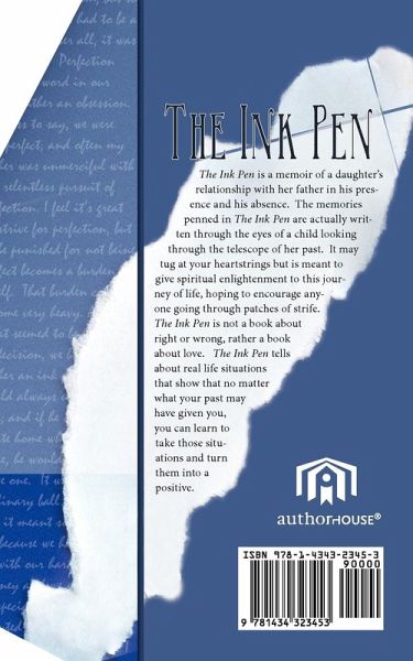The Ink Pen is a memoir of a daughter's relationship with her father in his presence and his absence. The memories penned in the Ink Pen are actually written through the eyes of a child looking through the telescope of her past. It may tug at your heartstrings but is meant to give spiritual enlightenment to this journey of life, hoping to encourage anyone going through patches of strife. The Ink Pen is not a book about right or wrong, rather a book about love. The Ink Pen tells about real life situations that show that no matter what your past may have given you, you can learn to take those situations and turn them into a positive.