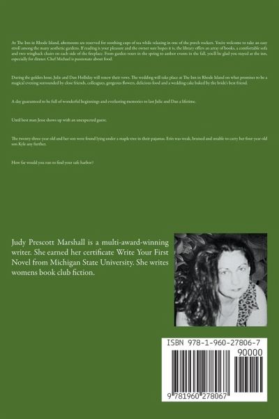 At The Inn in Rhode Island, afternoons are reserved for soothing cups of tea while relaxing in one of the porch rockers. You're welcome to take an easy stroll among the many aesthetic gardens. If reading is your pleasure and the owner sure hopes it is, the library offers an array of books, a comfortable sofa and two wingback chairs on each side of the fireplace. From garden tours in the spring to author events in the fall, you'll be glad you stayed at the inn, especially for dinner. Chef Michael is passionate about food. During the golden hour, Julie and Dan Holliday will renew their vows. The wedding will take place at The Inn in Rhode Island on what promises to be a magical evening surrounded by close friends, colleagues, gorgeous flowers, delicious food and a wedding cake baked by the bride's best friend. A day guaranteed to be full of wonderful beginnings and everlasting memories to last Julie and Dan a lifetime. Until best man Jesse shows up with an unexpected guest. The twenty-three-year old and her son were found lying under a maple tree in their pajamas. Erin was weak, bruised and unable to carry her four-year old son Kyle any further. How far would you run to find your safe harbor?
