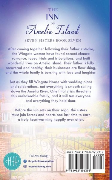 The uplifting and unforgettable conclusion to the Seven Sisters series! After coming together following their father's stroke, the Wingate women have found second-chance romance, faced trials and tribulations, and built wonderful lives on Amelia Island. Their father is fully recovered and healthy, their businesses are flourishing, and the whole family is bursting with love and laughter. But as they fill Wingate House with wedding plans and celebrations, not everything is smooth sailing down the Amelia River. One final crisis threatens this unshakeable family, and it will test everyone and everything they hold dear. Before the sun sets on their saga, the sisters must join forces and hearts one last time to earn a truly heartwarming happily ever after. The Seven Sisters Series - all available in digital, paperback, and audio formats. The Beach House on Amelia Island (book 1) The Café on Amelia Island (book 2) The Bookstore on Amelia Island (book 3) The Florist on Amelia Island (book 4) The Chocolate Shop on Amelia Island (book 5) The Dressmaker on Amelia Island (book 6) The Inn on Amelia Island (book 7)