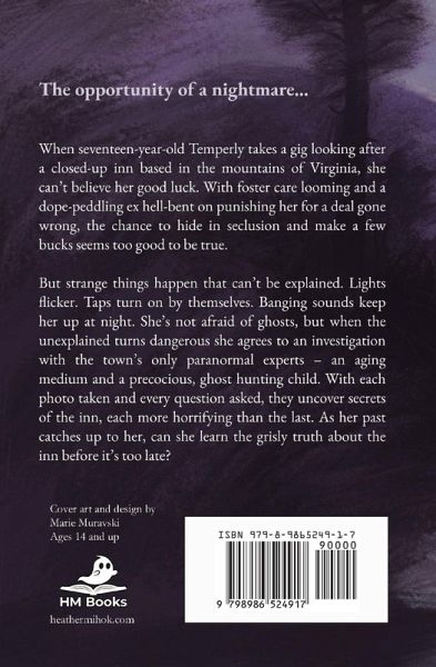 The opportunity of a nightmare . . . When seventeen-year-old Temperly takes a gig looking after a closed-up inn based in the mountains of Virginia, she can't believe her good luck. With foster care looming and a dope-peddling ex hell-bent on punishing her for a deal gone wrong, the chance to hide in seclusion and make a few bucks seems too good to be true. But strange things happen that can't be explained. Lights flicker. Taps turn on by themselves. Banging sounds keep her up at night. She's not afraid of ghosts, but when the unexplained turns dangerous she agrees to an investigation with the town's only paranormal experts - an aging medium and a precocious, ghost hunting child. With each photo taken and every question asked, they uncover secrets of the inn, each more horrifying than the last. As her past catches up to her, can she learn the grisly truth about the inn before it's too late?