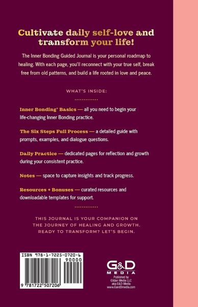 CULTIVATE DAILY SELF-LOVE AND TRANSFORM YOUR LIFE! The Inner Bonding Guided Journal is your personal roadmap to healing. With each page, you'll reconnect with your true self, break free from old patterns, and build a life rooted in love and peace. WHAT'S INSIDE: * Inner Bonding(R) Basics - all you need to begin your life-changing Inner Bonding practice. * The Six Steps Full Process -- a detailed guide with prompts, examples, and dialogue questions. * Daily Practice -- dedicated pages for reflection and growth during your consistent practice. * Notes -- space to capture insights and track progress. * Resources + Bonuses -- curated resources and downloadable templates for support. THIS JOURNAL IS YOUR COMPANION ON THE JOURNE Y OF HEALING AND GROWTH. READY TO TRANSFORM? LET'S BEGIN.