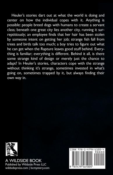 Heuler's stories dart out at what the world is doing and center on how the individual copes with it. Anything is possible: people breed dogs with humans to create a servant class; beneath one great city lies another city, running it surreptitiously; an employee finds that her hair has been stolen by someone intent on getting her job; strange fish fall from trees and birds talk too much; a boy tries to figure out what he can get when the Rapture leaves good stuff behind. Everything is familiar; everything is different. Behind it all, is there some strange kind of design or merely just the chance to adapt? In Heuler's stories, characters cope with the strange without thinking it's strange, sometimes invested in what's going on, sometimes trapped by it, but always finding their own way in. ¿