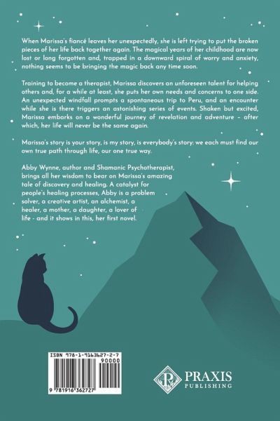When Marissa's fiancé leaves her unexpectedly, she is left trying to put the broken pieces of her life back together again. The magical years of her childhood are now lost or long forgotten and, trapped in a downward spiral of worry and anxiety, nothing seems to be bringing the magic back any time soon. Training to become a therapist, Marissa discovers an unforeseen talent for helping others and, for a while at least, she puts her own needs and concerns to one side. An unexpected windfall prompts a spontaneous trip to Peru, and an encounter while she is there triggers an astonishing series of events. Shaken but excited, Marissa embarks on a wonderful journey of revelation and adventure - after which, her life will never be the same again. Marissa's story is your story, is my story, is everybody's story: we each must find our own true path through life, our one true way. Abby Wynne, author and Shamanic Psychotherapist, brings all her wisdom to bear on Marissa's amazing tale of discovery and healing. A catalyst for people's healing processes, Abby is a problem solver, a creative artist, an alchemist, a healer, a mother, a daughter, a lover of life - and it shows in this, her first novel.