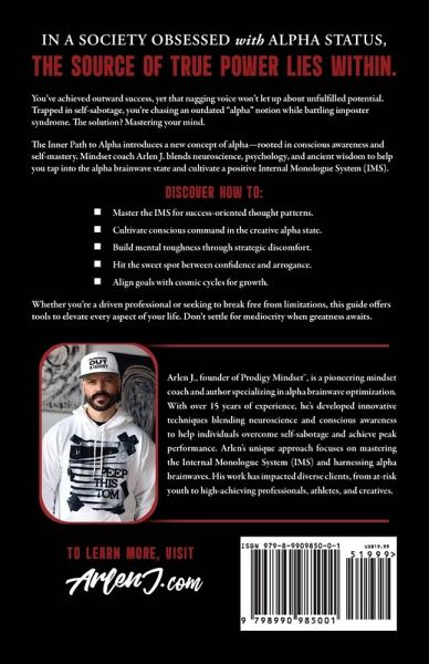 In a society obsessed with Alpha status, the source of true power lies within. You've achieved outward success-the job, the status, perhaps even the trappings of achievement. Yet that nagging voice in your head won't let up about missed opportunities and unfulfilled potential. Trapped in a cycle of self-sabotaging habits, you're chasing an outdated notion of being "alpha" while battling imposter syndrome. The good news is you have the power to change the game, and it all begins with mastering your mind. The Inner Path to Alpha presents a new concept of alpha-a mindset rooted in conscious awareness and self-mastery rather than aggression or dominance. Mindset coach Arlen J. draws from neuroscience, psychology, ancient wisdom, spirituality, and even astrology to show you how to tap into the alpha brainwave state and cultivate a positively charged Internal Monologue System (IMS). Filled with lessons from athletes, business leaders, and pop culture, this guide ventures into new territory in conscious awareness and enhanced performance across all life areas. Go from self-destruction to self-mastery and discover the extraordinary power of your internal dialogue.You'll discover how to:Master the Internal Monologue System (IMS) to leverage positive self-talk and recalibrate thought patterns for success. Train in the trifecta of conscious command and operate within the alpha state, the true state of creativity. Test your mettle with techniques to build mental toughness, utilizing strategic discomfort and personal-growth challenges. Hit the sweet spot on the zero-to-cocksure scale for optimal self-assurance without arrogance. Align your goals with cosmic cycles, using natural, universal rhythms for growth. The alpha brainwave represents the mind's most present state-a realm where you can recondition your mind to target any goal. Whether you're a driven professional, an aspiring entrepreneur, or simply want to break free from self-imposed limiting beliefs, The Inner Path to Alpha offers the tools and insights to elevate every aspect of your life.Don't settle for mediocrity when greatness awaits.