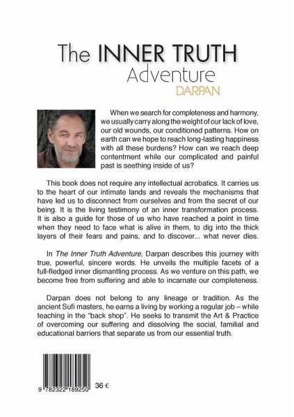 Over 8000 copies sold !When we search for completeness and harmony, we usually carry along the weight of our lack of love, our old wounds, our conditioned patterns. How on earth can we hope to reach long-lasting happiness with all these burdens? How can we reach deep contentment while our complicated and painful past is seething inside of us?This book does not require any intellectual acrobatics. It carries us to the heart of our intimate lands and reveals the mechanisms that have led us to disconnect from ourselves and from the secret of our being. It is the living testimony of an inner transformation process. It is also a guide for those of us who have reached a point in time when they need to face what is alive in them, to dig into the thick layers of their fears and pains, and to discover... what never dies.In The Inner Truth Adventure, Darpan describes this journey with true, powerful, sincere words. He unveils the multiple facets of a full- edged inner dismantling process. As we venture on this path, we become free from suffering and able to incarnate our completeness.Comments from readers: « For me, it is of a transparency and a clarity I fully absorb. I cannot read more than five or six pages as every single word is so important. » « I recognize myself everywhere. In my circle, people were attracted by the title and the presentation of the book. » « For me this is a valuable work and I want to absorb all the energy. » « Congratulations for the immense work that the achievement of such a book must represent, and thank you for the support I draw from it. » « This book is magnificent in many respects. It is very striking. I recognize myself in every single page as if I was gazing into a mirror. » « It's a great work and I sense that re-reading it each time, I will draw inspiration and answers for the rest of my life. » « Very well written book in a field where it's difficult to be objective. His therapist's real-life experience clearly shows the difference between therapy and authentic spiritual realisation. A must read for any seeker of truth. » « I don't think I'm wrong in saying that with this book, your contribution to the emergence of Consciousness with not be insignificant. » « No seeker of truth can doubt it after reading a few lines. »« I feel that your book summed up all others. »