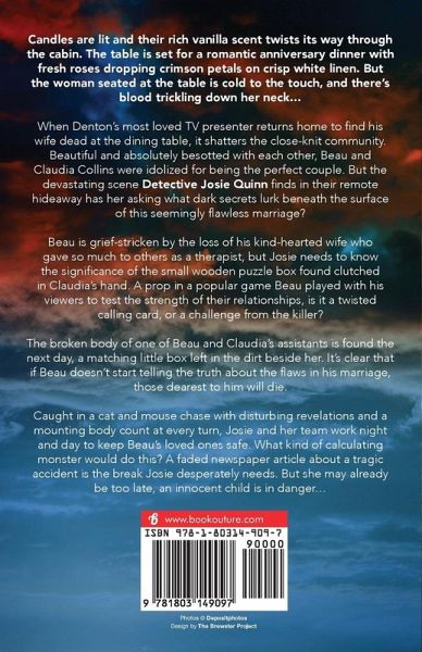 Candles are lit and their rich vanilla scent twists its way through the cabin. The table is set for a romantic anniversary dinner with fresh roses dropping crimson petals on crisp white linen. But the woman seated at the table is cold to the touch, and there's blood trickling down her neck... When Denton's most loved TV presenter returns home to find his wife dead at the dining table, it shatters the close-knit community. Beautiful and absolutely besotted with each other, Beau and Claudia Collins were idolized for being the perfect couple. But the devastating scene Detective Josie Quinn finds in their remote hideaway has her asking what dark secrets lurk beneath the surface of this seemingly flawless marriage? Beau is grief-stricken by the loss of his kind-hearted wife who gave so much to others as a therapist, but Josie needs to know the significance of the small wooden puzzle box found clutched in Claudia's hand. A prop in a popular game Beau played with his viewers to test the strength of their relationships, is it a twisted calling card, or a challenge from the killer? The broken body of one of Beau and Claudia's assistants is found the next day, a matching little box left in the dirt beside her. It's clear that if Beau doesn't start telling the truth about the flaws in his marriage, those dearest to him will die. Caught in a cat and mouse chase with disturbing revelations and a mounting body count at every turn, Josie and her team work night and day to keep Beau's loved ones safe. What kind of calculating monster would do this? A faded newspaper article about a tragic accident is the break Josie desperately needs. But she may already be too late, an innocent child is in danger... An absolutely gripping rollercoaster of a crime thriller from an Amazon, USA Today and Wall Street Journal bestselling author. Guaranteed to have you sleeping with the lights on and shouting from the rooftops about the twists, it's perfect for fans of Angela Marsons, Robert Dugoni and Rachel Caine. Everyone loves Lisa Regan: "A pulse-pounding, absolutely gripping and totally addictive page-turner that will have you racing through the pages and reeling at the twists. Hold on to your hat, and don't kid yourself that you'll be doing anything other than reading on the day that you start this one... Top marks!" NetGalley reviewer, 5 stars "And now BREATHE... From the very first page until the very last it had me gripped vice-like in its claws... Literally had me breathless and on the edge of my seat." Goodreads reviewer, 5 stars "Oh my goodness... My heart is still racing ... There are so many twists and turns in this plot it will make you dizzy... I just couldn't put this book down, bravo Ms Regan this is a winner." Leanne's Reviews, 5 stars "This book will leave you breathless... Oh my word... jaw-dropping and oh man, the action in this book doesn't stop." Goodreads reviewer, 5 stars "This book would Not. Let. Me. Go... I couldn't put it down until I had reached the very last page." @daniereads87, 5 stars