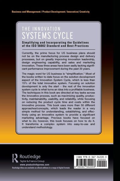 Currently, the prime focus for US business plans should not be on the manufacturing process design and delivery processes, but on greatly improving innovation leadership, design engineering capability, and sales and marketing innovation. These three areas have been sadly lacking significant performance improvement during the past 20 years. The magic word for US business is "simplification." Most of the books written to date focus on the solution development aspect of the Innovation System Cycle, which is less than 15% of the total innovative system. Focusing on solution development is only the start -- the rest of the innovation system cycle is what turns an idea into a profitable business. The techniques in this book are directed at key tasks across the innovative process, such as maximizing quality, productivity, maintainability, usability, and reliability, while focusing on reducing the product cycle time and costs within the innovative process. This book uses more than 50 different approaches/concepts, which leads the reader in a very simple method for understanding, establishing, and effectively using an innovative system to provide a significant marketing advantage. Previous books have focused on what to do; however, this book focuses on how to do it. It transforms a complicated complex system into easy-to-use and understand methodology.