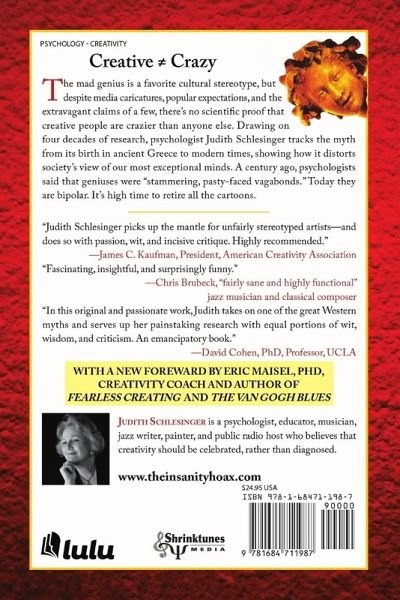 The mad genius is a favorite cultural stereotype, but despite media caricatures, popular expectations, and the extravagant claims of a few, there's no scientific proof that creative people are crazier than anyone else. Drawing on four decades of research, psychologist Judith Schlesinger tracks the myth from its birth in ancient Greece to modern times, showing how it distorts society's view of our most exceptional minds. Psychologists once claimed that geniuses were "stammering, pasty-faced vagabonds." Today they are called "bipolar," which is equally scientific. It's high time to retire all the cartoons.