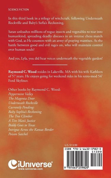 In this third book in a trilogy of witchcraft, following Underneath Rockville and Baby's Sofia's Reckoning. Satan unleashes millions of rogue insects and vegetables to tear into humankind, spreading deadly diseases in an intense chess match with God, as He counters with an army of praying mantises. As the battle between good and evil rages on, who will maintain control over human souls? And yes, Lyla, you did hear voices underneath the vegetable garden!