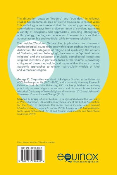 The distinction between "insiders" and "outsiders" in religious studies has become an area of fruitful discussion in recent years. This anthology aims to extend that discussion by gathering newly commissioned essays from a diverse range of scholars, spanning a variety of disciplines and approaches, including ethnography, anthropology, theology and education. The result is a book that is at once accessible and readable, while remaining scholarly. The Insider/Outsider Debate has implications for numerous methodological issues in the study of religion, such as the emic/etic distinction, the distinction between religion and spirituality, the notions of "believing without belonging", the claim to be "spiritual but not religious" and the existence of multiple, complicated, contesting religious identities. A particular focus of the volume is providing critiques of these methodological issues within the most recent academic approaches to religion – particularly models of lived and vernacular religion.