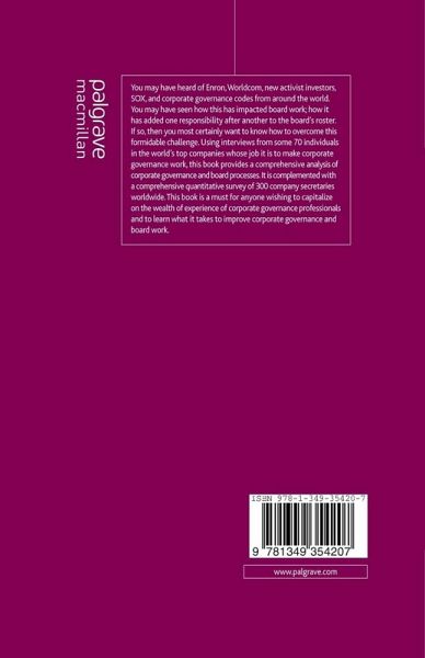 An up-to-date look at the latest thinking on Corporate Governance, capturing the wealth of experience of some 60 company secretaries in the world's top companies, whose job it is to make corporate governance work. A must for anyone who has ever had to make tough decisions on their board and wondered how their peers might have done it.