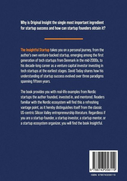 Why is Original Insight the single most important ingredient for startup success and how can startup founders obtain it?The Insightful Startup takes you on a personal journey, from the author's own venture-backed startup, emerging among the first generation of tech startups from Denmark in the mid-2000s, to his decade-long career as a venture capital investor investing in tech startups at the earliest stages. David Today shares how his understanding of startup success evolved over three paradigms spanning fifteen years. The book provides you with real-life examples from Nordic startups the author founded, invested in, and mentored. Readers familiar with the Nordic ecosystem will find this a refreshing vantage point, as it hereby distinguishes itself from the classic US-centric Silicon Valley entrepreneurship literature. Regardless if you are a startup-founder, a startup investor, a startup mentor, or a startup ecosystem organizer, you will find the book Insightful.