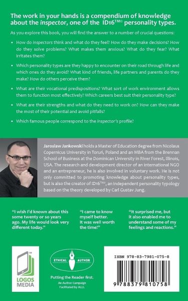 Discover a compendium of knowledge on the inspector - ISTJ personality type! As you explore this book, you will find the answer to a number of crucial questions: * How do inspectors think and what do they feel? How do they make decisions? How do they solve problems? What makes them anxious? What do they fear? What irritates them? * Which personality types are they happy to encounter on their road through life and which ones do they avoid? What kind of friends, life partners and parents do they make? How do others perceive them? * What are their vocational predispositions? What sort of work environment allows them to function most effectively? Which careers best suit their personality type? * What are their strengths and what do they need to work on? How can they make the most of their potential and avoid pitfalls? * Which famous people correspond to the inspector's profile? * Which nation displays the most features characteristic of this personality type? This book is part of the ID16 Personality Types series. ID16 is a personality typology which draws on the theory developed by Carl Gustav Jung. Typologies formulated on the basis of Jung's theory are widely used in teaching, training, coaching and human resource management, as well as in career and relationship counselling. They also form a basis for numerous programmes supporting personal development and improving interpersonal relationships. The majority of global businesses employ Jungian personality tests as a standard tool in their recruitment procedures and vocational development processes. Table of Contents Preface ID16 and Jungian Personality Typology The Inspector (ISTJ) * The Personality in a Nutshell * General character traits * Socially * Work and career paths * Potential strengths and weaknesses * Personal development * Well-known figures The ID16 Personality Types in a Nutshell Additional information Recommended publications Bibliography About the Author