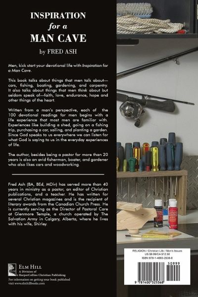 When Jesus taught, he used illustrations from everyday life, farming, sheep herding, even dish washing. Inspiration for a Man Cave follows that example and provides a series of 100 daily readings based upon real life experiences that men enjoy--fishing, cars, building, gardening and sailing--and relates these to biblical teaching. This book inspires men to look around them and see that God speaks to them everywhere. The author, besides being a pastor and an editor of Christian magazines, is also an avid fisherman, boater and gardener who also likes cars and woodworking.