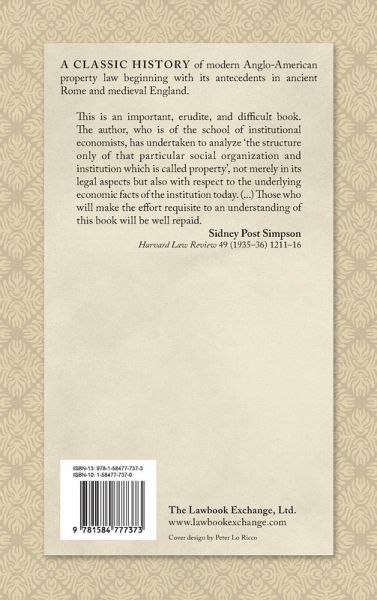 A classic history of modern Anglo-American property law beginning with its antecedents in ancient Rome and medieval England. Begins with an examination of the organization and development of the early Roman system of property, the foundations of the English or feudal systems of property, then shows how those systems evolved to modern Anglo-American property law in terms of structure and substance. Appendix includes a useful etymology of early terminology. Reprint of the sole edition. xiv, 645 pp.