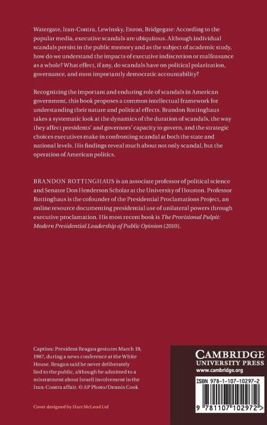 Watergate, Iran-Contra, Lewinsky, Enron, Bridgegate: according to the popular media, executive scandals are ubiquitous. Although individual scandals persist in the public memory and as the subject of academic study, how do we understand the impacts of executive indiscretion or malfeasance as a whole? What effect, if any, do scandals have on political polarization, governance, and, most importantly, democratic accountability? Recognizing the important and enduring role of scandals in American government, this book proposes a common intellectual framework for understanding their nature and political effects. Brandon Rottinghaus takes a systematic look the dynamics of the duration of scandals, the way they affect presidents and governors' capacity to govern, and the strategic choices executives make in confronting scandal at both the state and national levels. His findings reveal much about not only scandal, but the operation of American politics.