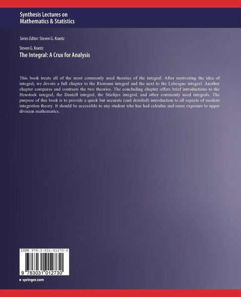 This book treats all of the most commonly used theories of the integral. After motivating the idea of integral, we devote a full chapter to the Riemann integral and the next to the Lebesgue integral. Another chapter compares and contrasts the two theories. The concluding chapter offers brief introductions to the Henstock integral, the Daniell integral, the Stieltjes integral, and other commonly used integrals. The purpose of this book is to provide a quick but accurate (and detailed) introduction to all aspects of modern integration theory. It should be accessible to any student who has had calculus and some exposure to upper division mathematics. Table of Contents: Introduction / The Riemann Integral / The Lebesgue Integral / Comparison of the Riemann and Lebesgue Integrals / Other Theories of the Integral