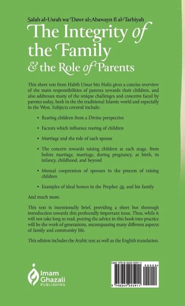 This short text from Habib Umar bin Hafiz gives a concise overview of the main responsibilities of parents towards their children, and also addresses many of the unique challenges and concerns faced by parents today, both in the the traditional Islamic world and especially in the West. Subjects covered include: Rearing children from a Divine perspective Factors which influence rearing of children Marriage and the role of each spouse The concern towards raising children at each stage, from before marriage, marriage, during pregnancy, at birth, in infancy, childhood, and beyond Mutual cooperation of spouses in the process of raising children Examples of ideal homes in the Prophet ¿ and his family ¿¿¿ ¿¿¿¿ ¿¿¿¿ And much more. This text is intentionally brief, providing a short but thorough introduction towards this profoundly important issue. Thus, while it will not take long to read, putting the advice in this book into practice will be the work of generations, encompassing many different aspects of family and community life. Author: Habib Umar bin Hafiz Translator: Abdullah Salih Languages: English & Arabic Pages: 100 Publisher: Imam Ghazali Publishing