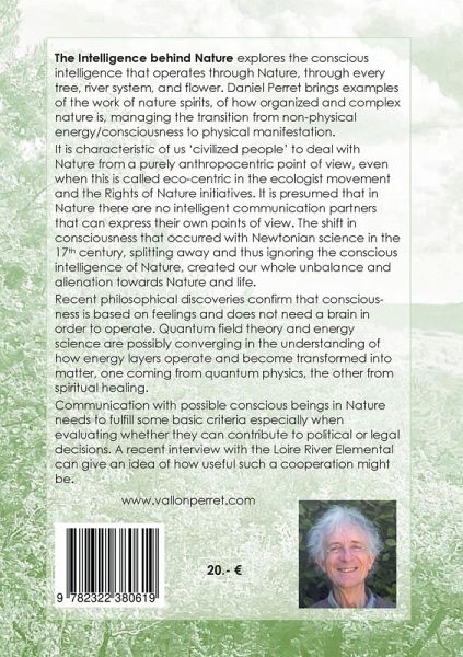 This book explores the conscious intelligence operating throughnature, through every tree, river system, or flower. The author brings examples of what the work of nature spirits concretely consists of and how organized and complex nature is operating, managing the transition from non-physical energy/consciouisness to physical manifestation.It is characteristic of us 'civilized people' to deal with nature from a purely anthropocentric point of view, even when this is called eco-centric in the ecologist movement and the rights of nature initiatives. It is presumed that in nature there are no intelligentcommunication partners that can express their own point of view.The shift in consciousness that occurred with Newtonian science in the 17th century, splitting away and ignore the conscious intelligence of nature, created our whole unbalance and alienation towards nature and life.Recent philosophical discoveries confirm that consciousness is based on feelings and does not need a brainin order to perate. Quantum field theory and energy science are possibly converging in the understanding of how energy layers operate and become transformed into matter, one coming from physics, the other from spiritual healing.Recent philosophical discoveries confirm that conscious-ness is based on feelings and does not need a brain in order to operate. Quantum field theory and energy science are possibly converging in the understanding of how energy layers operate and become transformed into matter, one coming from physics, the other from spiritual healing. Any communication with possible conscious beings in nature needs to fulfil some basic criteria espacially when evaluating whether they can contribute to political or legal decisions. A recent interview with the Loire River Elemental can give an idea of how useful such a cooperation might be.