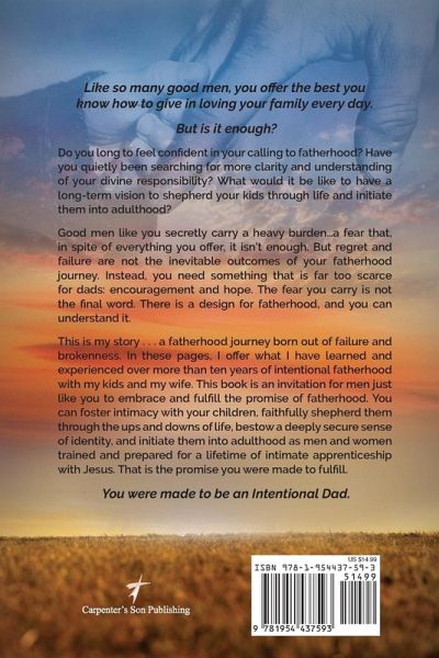 Like so many good men, you offer the best you know how to give in loving your family every day. But is it enough? Do you long to feel confident in your calling to fatherhood? Have you quietly been searching for more clarity and understanding of your divine responsibility? What would it be like to have a long-term vision to usher your kids through the ups and downs of life and initiate them into adulthood? Good men like you secretly carry a heavy burden...a fear that, in spite of everything you offer, it isn't enough. But regret and failure are not the inevitable outcomes of your fatherhood journey. Instead, you need something that is far too scarce for Dads: encouragement and hope. The fear you carry is not the final word. The problem is not you or your heart. There is a design for fatherhood, and you can understand it. This is my story...a fatherhood journey born out of failure and brokenness. In these pages, I offer what I have learned and experienced over more than ten years of intentional fatherhood with my kids and my wife. You were made for many things...nothing more sacred than your role as a father. This book is an invitation for men just like you to embrace and fulfill the promise of fatherhood. You can foster intimacy with your children, faithfully shepherd them through the ups and downs of life, bestow a deeply secure sense of identity as beloved sons and daughters of God, and initiate them into adulthood as men and women trained and prepared for a lifetime of intimacy with God as apprentices of Jesus. That is the promise you were made to fulfill. You were made to be an Intentional Dad.