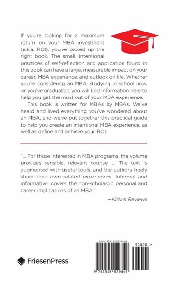 If you're looking for a maximum return on your MBA investment (a.k.a. ROI), you've picked up the right book. The small, intentional practices of self-reflection and application found in this book can have a large, measurable impact on your career, MBA experience, and outlook on life. Whether you're considering an MBA, studying in school now, or you've graduated, you will find information here to help you get the most out of your MBA experience. This book is written for MBAs by MBAs. We've heard and lived everything you've wondered about an MBA, and we've put together this practical guide to help you create an intentional MBA experience, as well as define and achieve your ROI.
