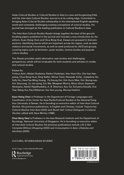 The Inter-Asia Cultural Studies Reader brings together the best of the ground breaking papers published in the journal and includes a new introduction by the editors, Chen Kuan-Hsing and Chua Beng Huat. Essays are grouped in thematic sections, including issues which are important across the region, such as State violence and social movements and work produced by IACS sub-groups, such as feminism, queer studies, cinema studies and popular culture studies.