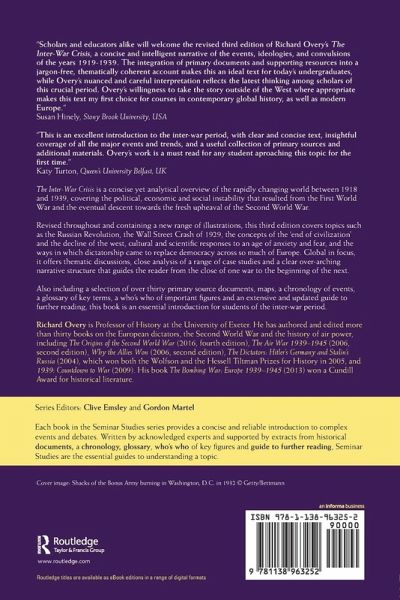 "Scholars and educators alike will welcome the revised third edition of Richard Overy's The Inter-War Crisis, a concise and intelligent narrative of the events, ideologies, and convulsions of the years 1919-1945. The integration of primary documents and supporting resources into a jargon-free, thematically coherent account makes this an ideal text for today's undergraduates, while Overy's nuanced and careful interpretation reflects the latest thinking among scholars of this crucial period. Overy's willingness to take the story outside of the West where appropriate makes this text my first choice for courses in contemporary global history, as well as modern Europe."