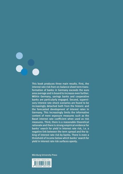 This book produces three main results. First, the interest rate risk from on-balance sheet term transformation of banks in Germany exceeds the euro area average and is bound to increase even further. Within Germany, savings banks and cooperative banks are particularly engaged. Second, supervisory interest rate shock scenarios are found to be increasingly detached both from the historic and the forecasted development of interest rates in Germany. This increasingly limits the informative content of mere exposure measures such as the Basel interest rate coefficient when used as risk measures. Third, there is a reasonable theoretical rationale and there is strong empirical evidence for banks' search for yield in interest rate risk, i.e. a negative link between the term spread and the taking of interest rate risk by banks. There is even a threshold of income below which banks' search for yield in interest rate risk surfaces openly.