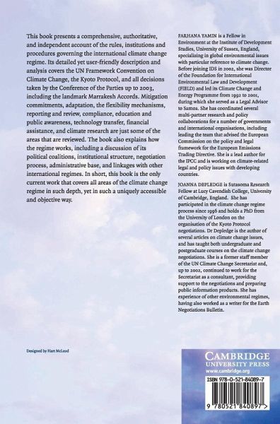 Foreword Preface and acknowledgments 1. Introduction 2. Overview 3. Regime participants 4. Objective and principles 5. Mitigation commitments 6. Flexibility mechanisms 7. Research, systematic observation, education and public awareness 8. Adaptation 9. Impacts of response measures 10. Finance, technology and capacity-building 11. Reporting and review 12. Compliance 13. Institutions 14. The negotiation process 15. Scientific and technical input 16. Administering the regime 17. Linkages 18. Evolution of the regime 19. Conclusion: taking stock and moving forward Appendix I: List of parties, their groups and key statistics Appendix II: Annex 1 - parties' emissions and projections Appendix III: Tables of articles, COP decisions and issues Bibliography.