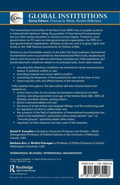 The International Committee of the Red Cross (ICRC) has a complex position in international relations, being the guardian of international humanitarian law but often acting discretely to advance human dignity. Treated by most governments as if it were an inter-governmental organization, the ICRC is a non-governmental organization, all-Swiss at the top, and it is given rights and duties in the 1949 Geneva Conventions for Victims of War. Written by two formidable experts in the field, this book analyzes international humanitarian action as practiced by the International Red Cross, explaining its history and structure as well as examining contemporary field experience and broad diplomatic initiatives related to its principal tasks. Such tasks include: ensuring that detention conditions are humane for those imprisoned by reason of political conflict or war providing material and moral relief in conflict promoting development of the humanitarian part of the laws of war improving the unity and effectiveness of the movement Fully updated throughout, the new edition will also include brand new material on: armed actors who do not accept humanitarian restrictions on their actions, including expanded coverage of the Islamic State (ISIL, ISIS), Al Shabab, and Boko Haram, among others Syrian internationalized civil war issue of drone strikes and targeted killings, and the continuing push for regulation of what is called cyber war the question of the field of application of international humanitarian law (what is the battlefield?). Particularly when states declare "war" on "terrorist groups" operating inside other states regulation of new weapons and new uses of old weapons
