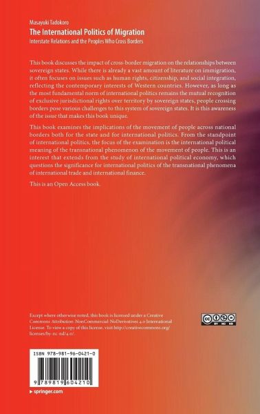 This open access book discusses the impact of cross-border migration on the relationships between sovereign states. While there is already a vast amount of literature on immigration, it often focuses on issues such as human rights, citizenship, and social integration, reflecting the contemporary interests of Western countries. However, as long as the most fundamental norm of international politics remains the mutual recognition of exclusive jurisdictional rights over territory by sovereign states, people crossing borders pose various challenges to this system of sovereign states. It is this awareness of the issue that makes this book unique.