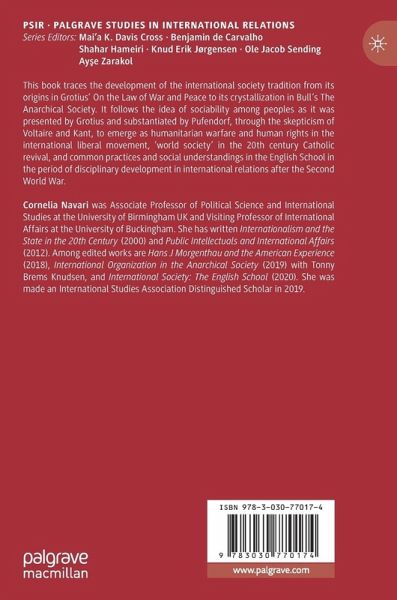Chapter 1: Introduction: Two Ideas of Tradition.- Chapter 2: Grotius the Innovator (1625).- Chapter 3: Hobbes (1588 -1679), a Contributor, and Pufendorf (1632 - 1694), the Master.- Chapter 4: The Gottingen Historians, Heeren (1760-1842) and Ranke (1795-1886): the Real Thing.- Chapter 5: Eighteenth-Century Scepticism: Rousseau, Kant and Vattel.- Chapter 6: The French Revolution-Concert, Progress and Civilization: Gentz, Wheaton and Lorimer.- Chapter 7: Civilization as Humanity: the "men of 1873", John Westlake and the Grotius Society.- Chapter 8: The Recovery of Vitoria and Suarez and the apprehension of a World Society: Krabbe, Verdross and Leon Duguit.- Chapter 9: The Lawyers and the League: Charles Manning, Hersch Lauterpacht and Georg Schwarzenberger.- Chapter 10: The British Committee, Hedley Bull (1932-1985) and the Theory of International Society.- Chapter 11: International Society as a Research Tradition: Vincent, Keene, Wheeler, Buzan, among others.