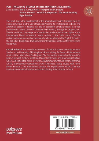 Chapter 1: Introduction: Two Ideas of Tradition.- Chapter 2: Grotius the Innovator (1625).- Chapter 3: Hobbes (1588 -1679), a Contributor, and Pufendorf (1632 - 1694), the Master.- Chapter 4: The Gottingen Historians, Heeren (1760-1842) and Ranke (1795-1886): the Real Thing.- Chapter 5: Eighteenth-Century Scepticism: Rousseau, Kant and Vattel.- Chapter 6: The French Revolution-Concert, Progress and Civilization: Gentz, Wheaton and Lorimer.- Chapter 7: Civilization as Humanity: the "men of 1873", John Westlake and the Grotius Society.- Chapter 8: The Recovery of Vitoria and Suarez and the apprehension of a World Society: Krabbe, Verdross and Leon Duguit.- Chapter 9: The Lawyers and the League: Charles Manning, Hersch Lauterpacht and Georg Schwarzenberger.- Chapter 10: The British Committee, Hedley Bull (1932-1985) and the Theory of International Society.- Chapter 11: International Society as a Research Tradition: Vincent, Keene, Wheeler, Buzan, among others.