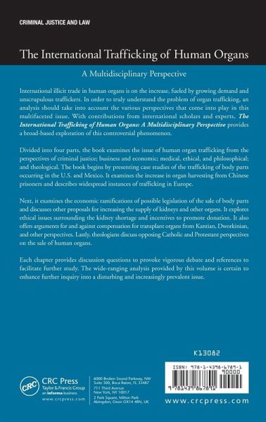 This volume examines the issue of human organ trafficking from the perspectives of criminal justice, business, medicine, ethics, philosophy, and theology.