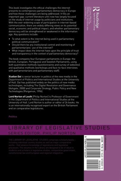 This book investigates the ethical challenges the internet presents to contemporary parliamentary democracy in Europe and how these challenges are being addressed. It fills an important gap: current literature until now has largely focused on the study of internet usage by politicians and institutions. With the ever widening scope of participation in internet-based communication, there are widely differing views on its potential social, economic and political impact, and whether parliamentary democracy will be strengthened or weakened in the information age. Key questions include: To what extent is the internet being used in parliamentary political communication (the ethics of behaviour)? Should there be any institutional control and monitoring of parliamentarians' use of the internet (the ethics of code of conduct)? What impact does the internet have upon the principle of trust and transparency in the context of parliamentary democracy (the ethics of accountability)? The book compares four European parliaments in Europe: the British, European, Portuguese and Swedish Parliaments, using both quantitative methods (questionnaires and survey of websites) and qualitative methods (workshops and face-to-face interviews with parliamentarians and parliamentary staff). This book was previously published as a special issue of the Journal of Legislative Studies.