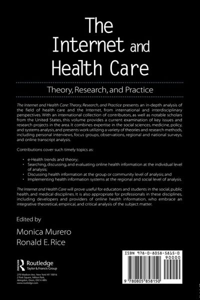 The Internet and Health Care: Theory, Research, and Practice presents an in-depth introduction to the field of health care and the Internet, from international and interdisciplinary perspectives. It combines expertise in the areas of the social sciences, medicine, policy, and systems analysis. With an international collection of contributors, it provides a current examination of key issues and research projects in the area. Methods and data used in the chapters include personal interviews, focus groups, observations, regional and national surveys, online transcript analysis, and much more. Sections in the book cover: *e-Health trends and theory; *searching, discussing, and evaluating online health information at the individual level of analysis; *discussing health information at the group or community level; and *implementing health information systems at the regional and social level. The Internet and Health Care will prove useful for university educators and students in the social, public health, and medical disciplines, including Internet researchers. It is also oriented to professionals in many disciplines who will appreciate an integrative theoretical, empirical, and critical analysis of the subject matter, including developers and providers of online health information.