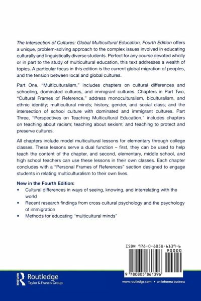 The Intersection of Cultures: Multicultural Education in the United States and the Global Economy, Fourth Edition offers a unique, problem-solving approach to the complex issues involved in educating culturally and linguistically diverse students. Perfect for any course devoted wholly or in part to the study of multicultural education, this text addresses a wealth of topics. A particular focus in this edition is the current global migration of peoples, and the tension between local and global cultures. Part One, Multiculturalism, includes chapters on cultural differences and schooling, dominated cultures, and immigrant cultures. Chapters in Part Two, Cultural Frames of Reference, address monoculturalism, biculturalism, and ethnic identity; multicultural minds; history, gender, and social class; and the intersection of school culture with dominated and immigrant cultures. Part Three, Perspectives on Teaching Multicultural Education, includes chapters on teaching about racism; teaching about sexism; and teaching to protect and preserve cultures. All chapters include model multicultural lessons for elementary through college classes. These lessons serve a dual function-first, they can be used to help teach the content of the chapter, and second, elementary, middle school, and high school teachers can use these lessons in their own classes. Each chapter concludes with a "Personal Frames of References" section designed to engage students in relating multiculturalism to their own lives. New in the Fourth Edition: *cultural differences in ways of seeing, knowing, and interrelating with the world; *recent research findings from cross cultural psychology and the psychology of immigration; and *methods for educating "multicultural minds".