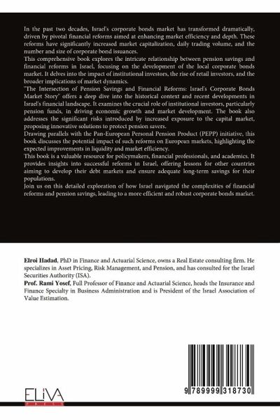 In the past two decades, Israel's corporate bonds market has transformed dramatically, driven by pivotal financial reforms aimed at enhancing market efficiency and depth. These reforms have significantly increased market capitalization, daily trading volume, and the number and size of corporate bond issuances. This comprehensive book explores the intricate relationship between pension savings and financial reforms in Israel, focusing on the development of the local corporate bonds market. It delves into the impact of institutional investors, the rise of retail investors, and the broader implications of market dynamics. ""The Intersection of Pension Savings and Financial Reforms: Israel's Corporate Bonds Market Story"" offers a deep dive into the historical context and recent developments in Israel's financial landscape. It examines the crucial role of institutional investors, particularly pension funds, in driving economic growth and market development. The book also addresses the significant risks introduced by increased exposure to the capital market, proposing innovative solutions to protect pension savers. Drawing parallels with the Pan-European Personal Pension Product (PEPP) initiative, this book discusses the potential impact of such reforms on European markets, highlighting the expected improvements in liquidity and market efficiency. This book is a valuable resource for policymakers, financial professionals, and academics. It provides insights into successful reforms in Israel, offering lessons for other countries aiming to develop their debt markets and ensure adequate long-term savings for their populations. Join us on this detailed exploration of how Israel navigated the complexities of financial reforms and pension savings, leading to a more efficient and robust corporate bonds market.