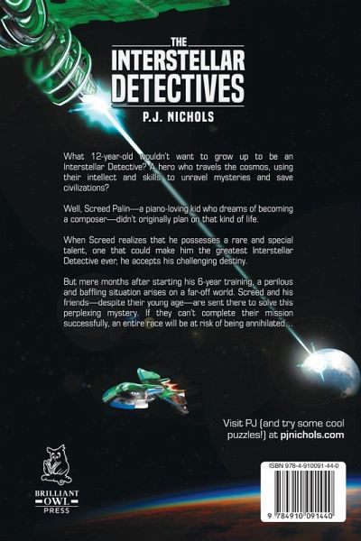 An adventure series filled with suspense, mystery, and fantasy - for kids ages 9-12 and teens What 12-year-old wouldn't want to grow up to be an Interstellar Detective? A hero who travels the cosmos, using their intellect and skills to unravel mysteries and save civilizations? Well, Screed Palin-a piano-loving kid who dreams of becoming a composer-didn't originally plan on that kind of life. When Screed realizes that he possesses a rare and special talent, one that could make him the greatest Interstellar Detective ever, he accepts his challenging destiny. But mere months after starting his 6-year training, a perilous and baffling situation arises on a far-off world. Screed and his friends-despite their young age-are sent on a mission that, if unsuccessful, would leave an entire race at risk of being annihilated...