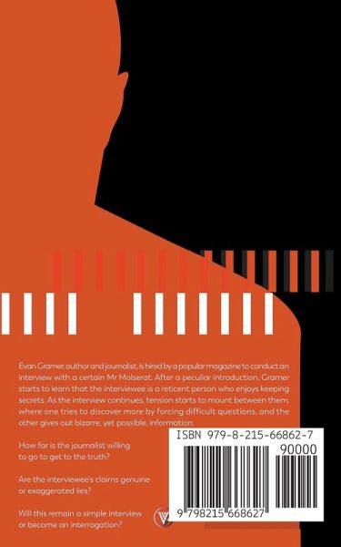 Evan Gramer, author and journalist, is hired by a popular magazine to conduct an interview with a certain Mr Molserat. After a peculiar introduction, Gramer starts to learn that the interviewee is a reticent person who enjoys keeping secrets. As the interview continues, tension starts to mount between them, where one tries to discover more by forcing difficult questions, and the other gives out bizarre, yet possible, information. How far is the journalist willing to go to get to the truth? Are the interviewee's claims genuine or exaggerated lies? Will this remain a simple interview or become an interrogation?…mehr