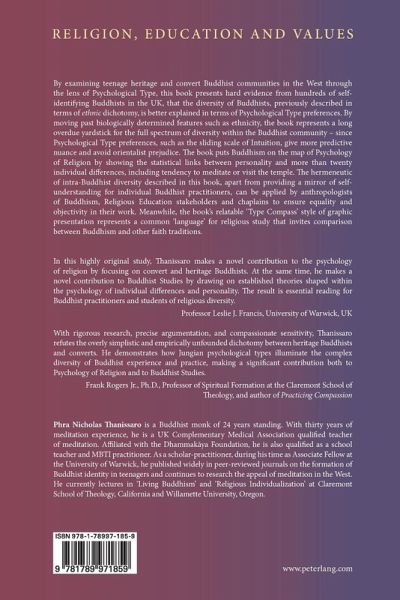 By examining teenage heritage and convert Buddhist communities in the West through the lens of Psychological Type, this book presents hard evidence from hundreds of self-identifying Buddhists in the UK, that the diversity of Buddhists, previously described in terms of ethnic dichotomy, is better explained in terms of Psychological Type preferences. By moving past biologically determined features such as ethnicity, the book represents a long overdue yardstick for the full spectrum of diversity within the Buddhist community - since Psychological Type preferences, such as the sliding scale of Intuition, give more predictive nuance and avoid orientalist prejudice. The book puts Buddhism on the map of Psychology of Religion by showing the statistical links between personality and more than twenty individual differences, including tendency to meditate or visit the temple. The hermeneutic of intra-Buddhist diversity described in this book, apart from providing a mirror of self-understanding for individual Buddhist practitioners, can be applied by anthropologists of Buddhism, Religious Education stakeholders and chaplains to ensure equality and objectivity in their work. Meanwhile, the book's relatable 'Type Compass' style of graphic presentation represents a common 'language' for religious study that invites comparison between Buddhism and other faith traditions.