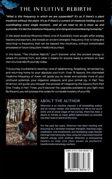 "What is this frequency in which we are suspended? It's as if there's a plant medicine without the plant. It's as if there's a current of medicine holding us and coordinating every single moment... and all we need to do is show up and surrender. It's like the medicine frequency of a rising and remembering humanity." In the latest book by Rhiannon Heins, one of Australia's most sought-after energy healers and teachers, she reveals an ancient energetic frequency that is rising and returning-a frequency that can be tapped into intuitively, without complicated processes or hours-long plant medicine journeys. In this book, "The Intuitive Rebirth," you'll discover what this ancient energy is, where it's coming from, and what it means for anyone ready to embark on their own intuitive rebirth journey today. This journey is a shamanic rewiring-one of repatterning, forgetting, remembering, and returning home to your absolute soul truth. Over 15 lessons, the channeled medicine frequency of Awen will guide you to reveal and activate more of your profound potential, your orgasmic pleasure, and your primal joy. In Part Two, Rhiannon will guide you through the process of integrating the lessons from Part One. Finally, in Part Three, you'll discover the upgrades available to you right now. By the end, you will possess the codes for complete mastery of your life. About the Author Rhiannon is an intuitive channel, a #1 bestselling author, and an energy worker. She dedicates her life to her soul's work, and at every stage of her journey, there has been a desire to initiate as many gifted lightworkers as possible into their roles on Earth at this time. For the past ten years, Rhiannon has been working and lecturing as an intuitive body-worker, psychic channel, remedial massage therapist, teaching yoga, meditation, and breathwork, and facilitating yoga teacher trainings internationally. Now, using her channeled Intuitive Rebirth energy work method, Rhiannon is empowering healers to step into their power as authentic, transformational energy workers.