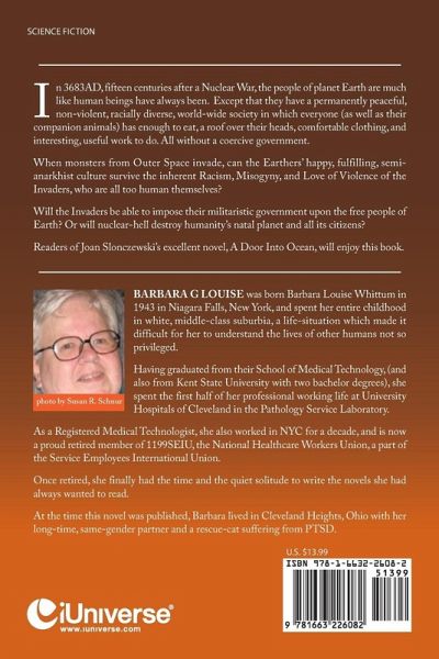 In 3683AD, fifteen centuries after a Nuclear War, the people of planet Earth are much like human beings have always been. Except that they have a permanently peaceful, non-violent, racially diverse, world-wide society in which everyone (as well as their companion animals) has enough to eat, a roof over their heads, comfortable clothing, and interesting, useful work to do. All without a coercive government. When monsters from Outer Space invade, can the Earthers' happy, fulfilling, semi-anarkhist culture survive the inherent Racism, Misogyny, and Love of Violence of the Invaders, who are all too human themselves? Will the Invaders be able to impose their militaristic government upon the free people of Earth? Or will nuclear-hell destroy humanity's natal planet and all its citizens? Readers of Joan Slonczewski's excellent novel, A Door Into Ocean, will enjoy this book.