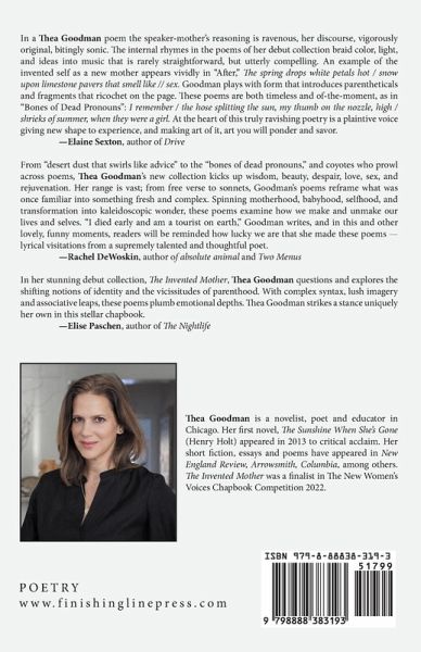 The Invented Mother explores cultural notions and daily realities of our most elemental relationships, as well as gender, sexuality, nature and creation. It's poems are full of wonder: What is a mother? What is natural and what is constructed? How do words define us? Here, acts of care, creativity and violence are subjects that begin with awe of the natural world. Written in a variety of forms, animals, food, color and light animate verse that evokes the mysteries of love on a changing planet.